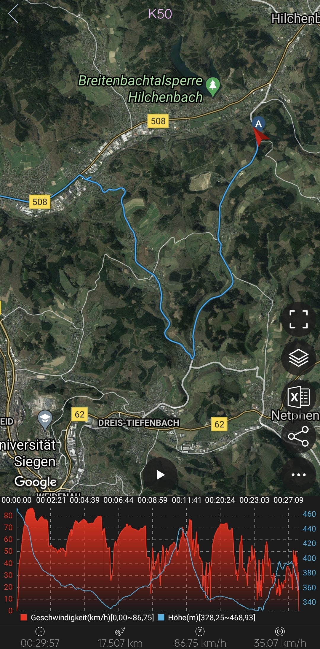 Eine Vollbremsung wurde auch absolviert, da ich einen die Kreuzung querenden RTW etwas zu spät bemerkt habe.
