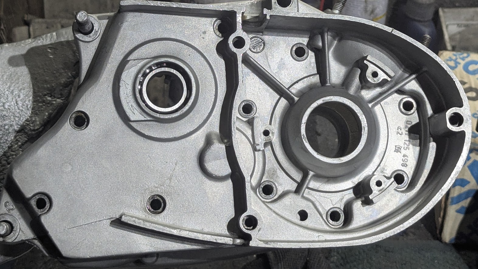 Kurbelwelle eingemessen und in die linke Hälfte eingesetzt: