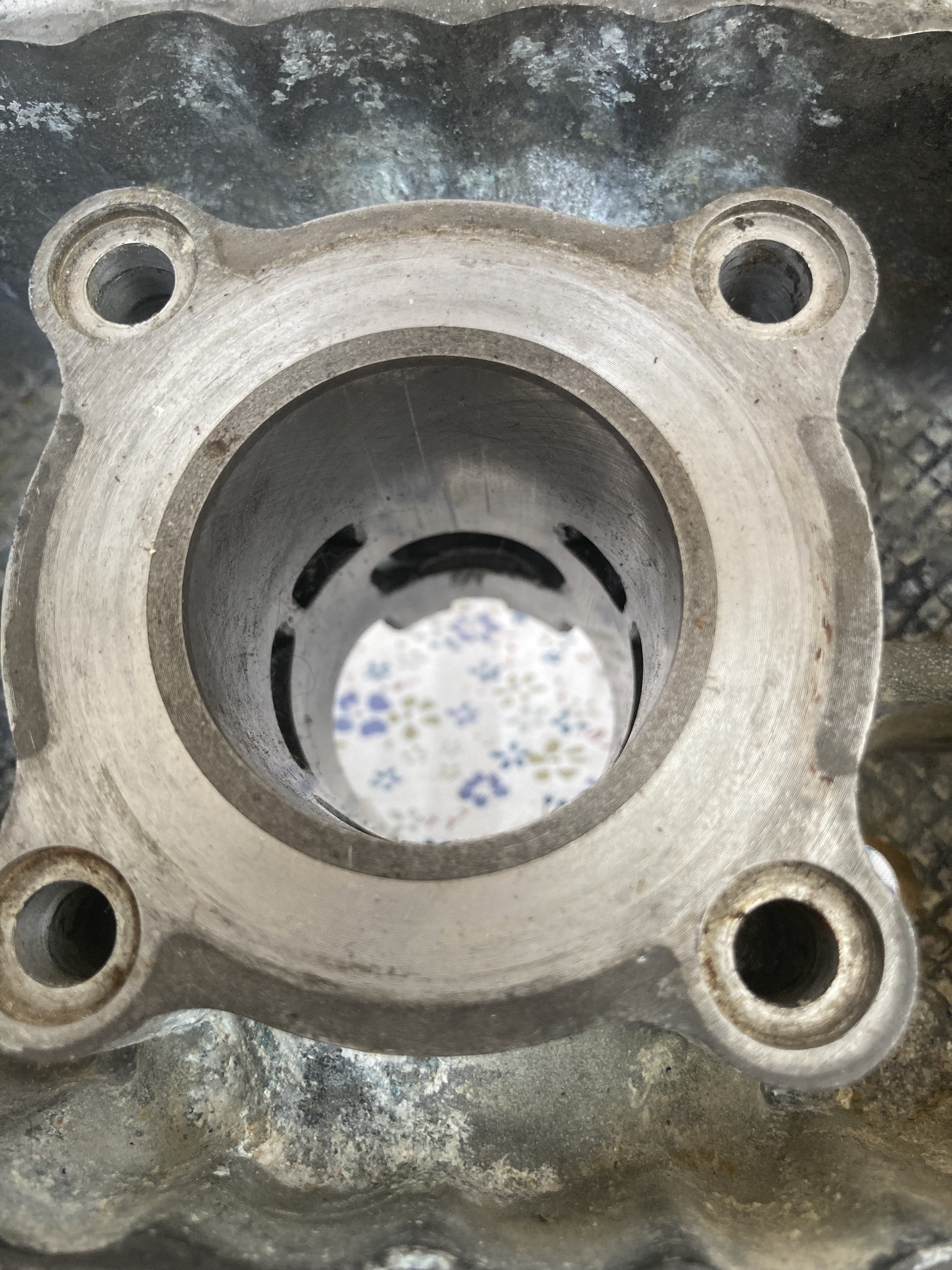 Die Honspuren sind noch voll zu sehen,der Zylinder hat nach der letzten Reparatur nicht viel gelaufen.